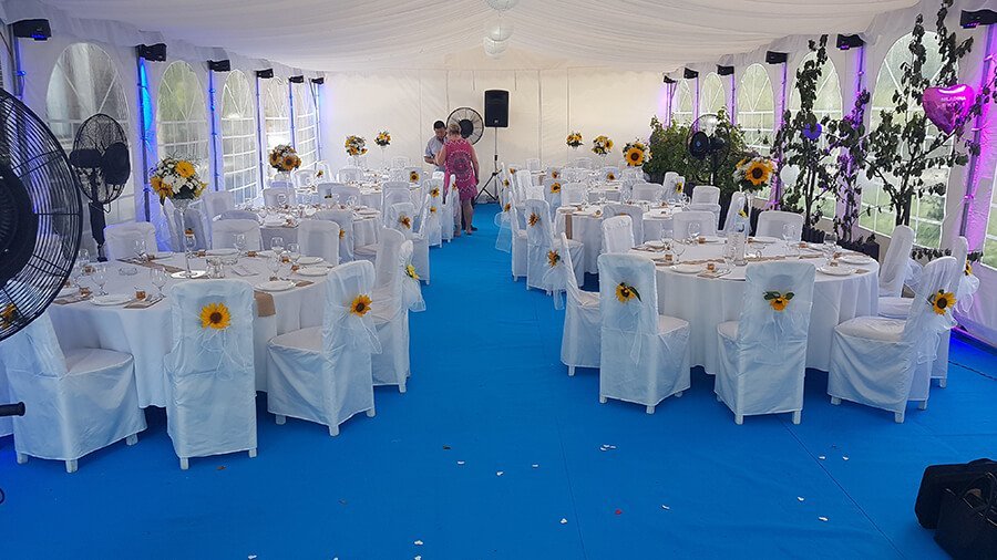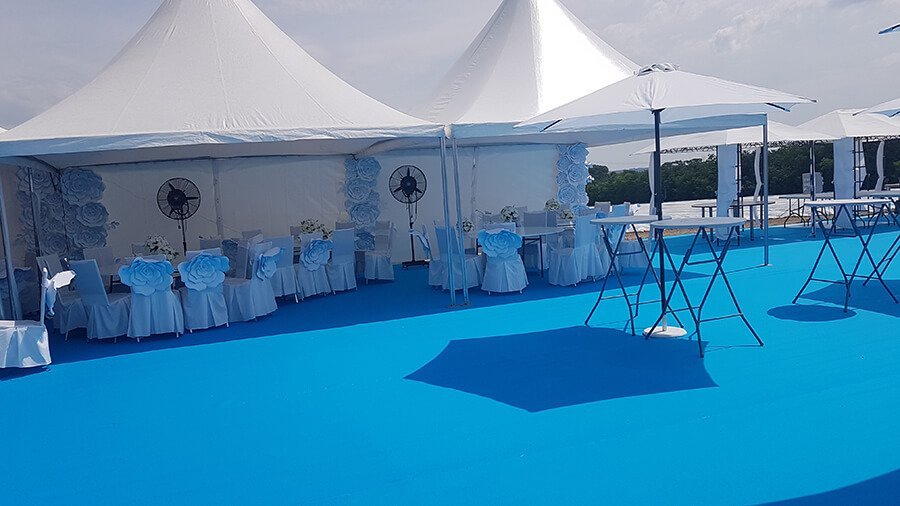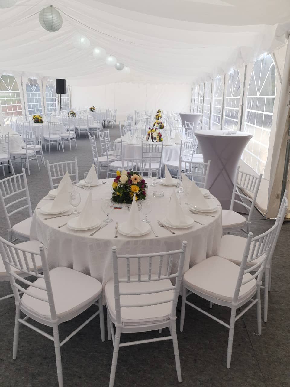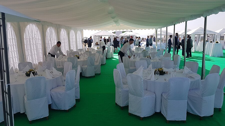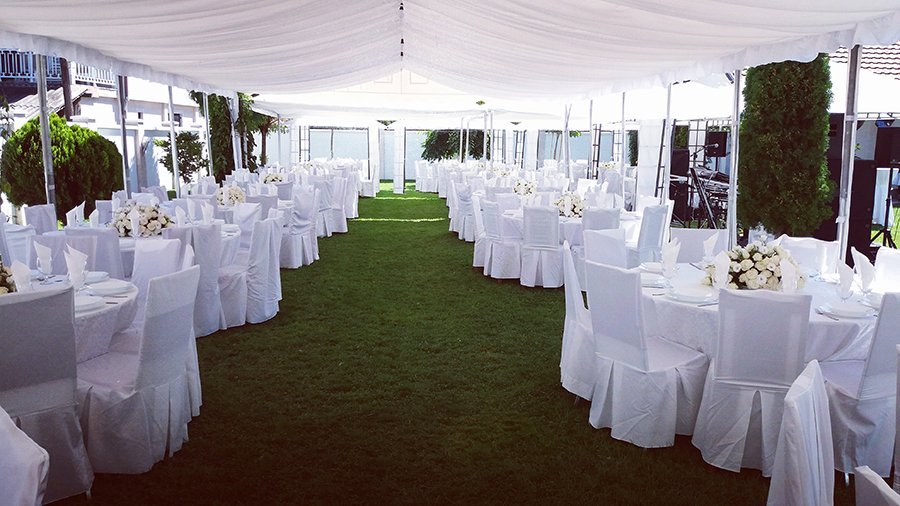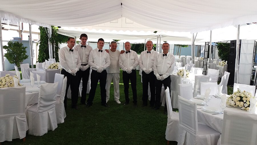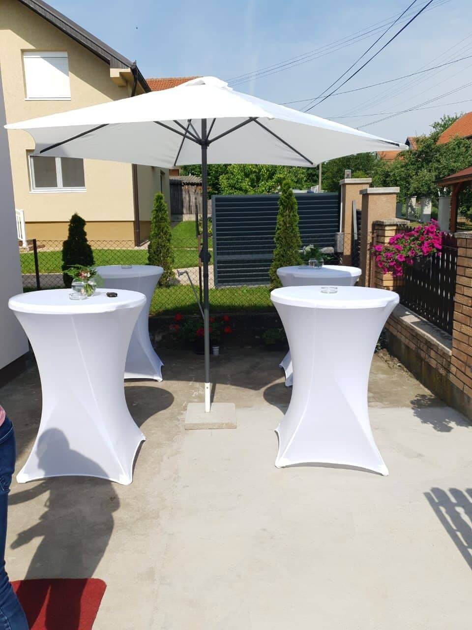 U ponudi su kvalitetni, elegantni, beli šatori, modernog dizajna, čija je dužina prilagodljiva Vama i Vašim potrebama, kao i mogućnostima prostora na kome želite da postavite šator. Kapaciteti šatora su od 80 do 220 sedećih mesta. Svi šatori se mogu urediti i dekorisati prema vašim željama.